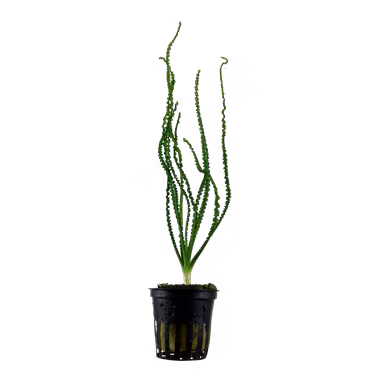 Crinum calamistratum från Västafrika, med ett väldigt speciellt utseende hos denna lökväxt med mörkgröna, mycket smala och krusiga blad. De lockiga bladen blir upp till 120 cm långa vid goda förhållanden. Crinum calamistratum hör till familjen amaryllisväxter och kan lagra näring i löken. De starkt krusade bladen behöver ingen stark belysning, bara lätt vattenrörelser, t.ex. i närheten av pumpen och detta är tillväxtfrämjande.