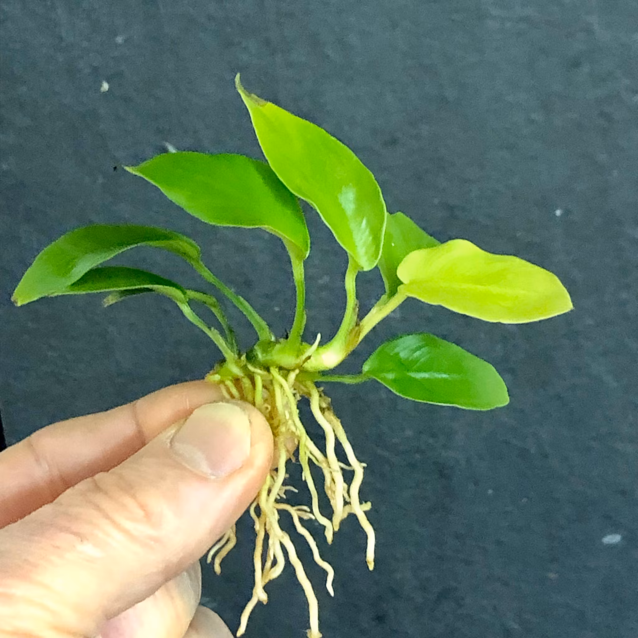 Anubias barteri var.nana ´Gold´En annan variant av Anubias som kallas "Gold". Den upptäcktes i en odling på en plantskola i Taiwan. Efter den inledande isolerin