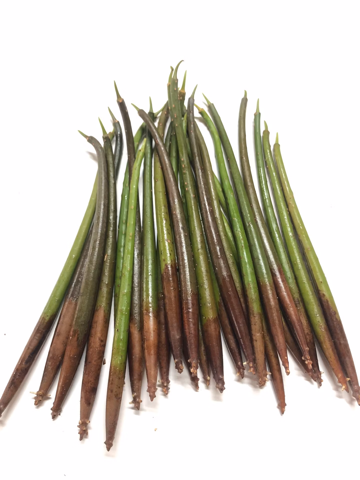 Mangrove frö. Rhizophora mangle, Red Mangrove seeds. Dessa frön faller ner från mangroveträdet och kan flyta i vattnet, de gror efter en tid i vatten, sött, bräckt och saltvatten och fortsätter sedan att växa.
